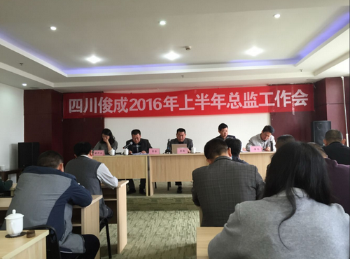 2016年4月9日四川俊成工程項目管理咨詢有限公司在成都市龍潭工業園區維斯頓酒店召開了2016年上半年總監工作會議。參會人員包括:公司領導、各項目總監及總監代表、公司各部門負責人。