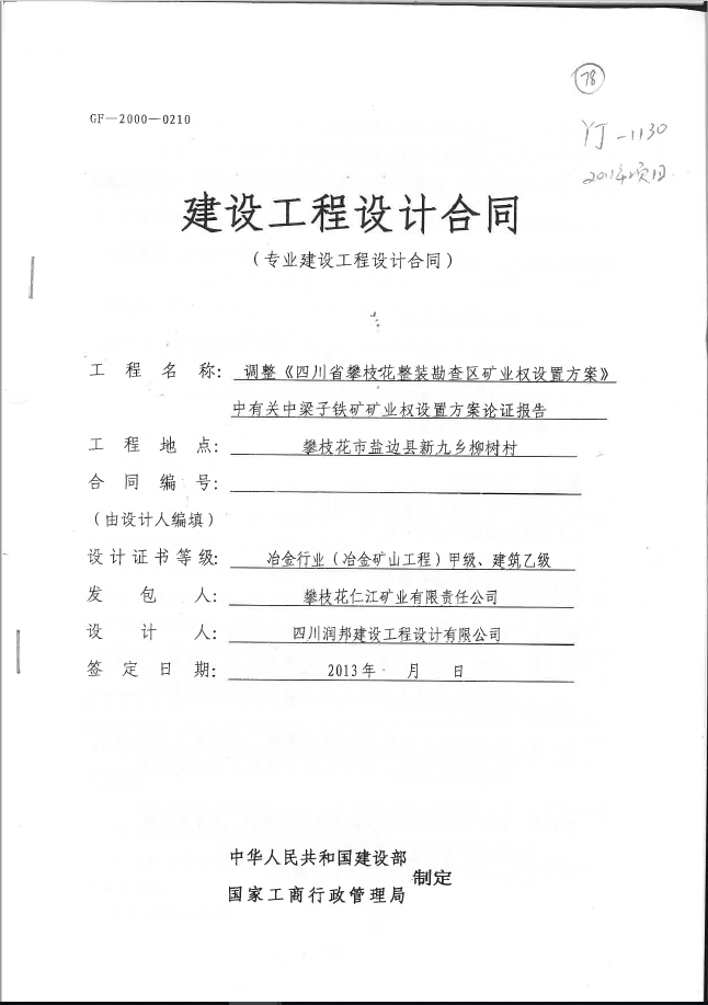 調整《四川省攀枝花整裝勘察區礦業權設置方案》中有關中梁子鐵礦礦業權設置方案論證報告