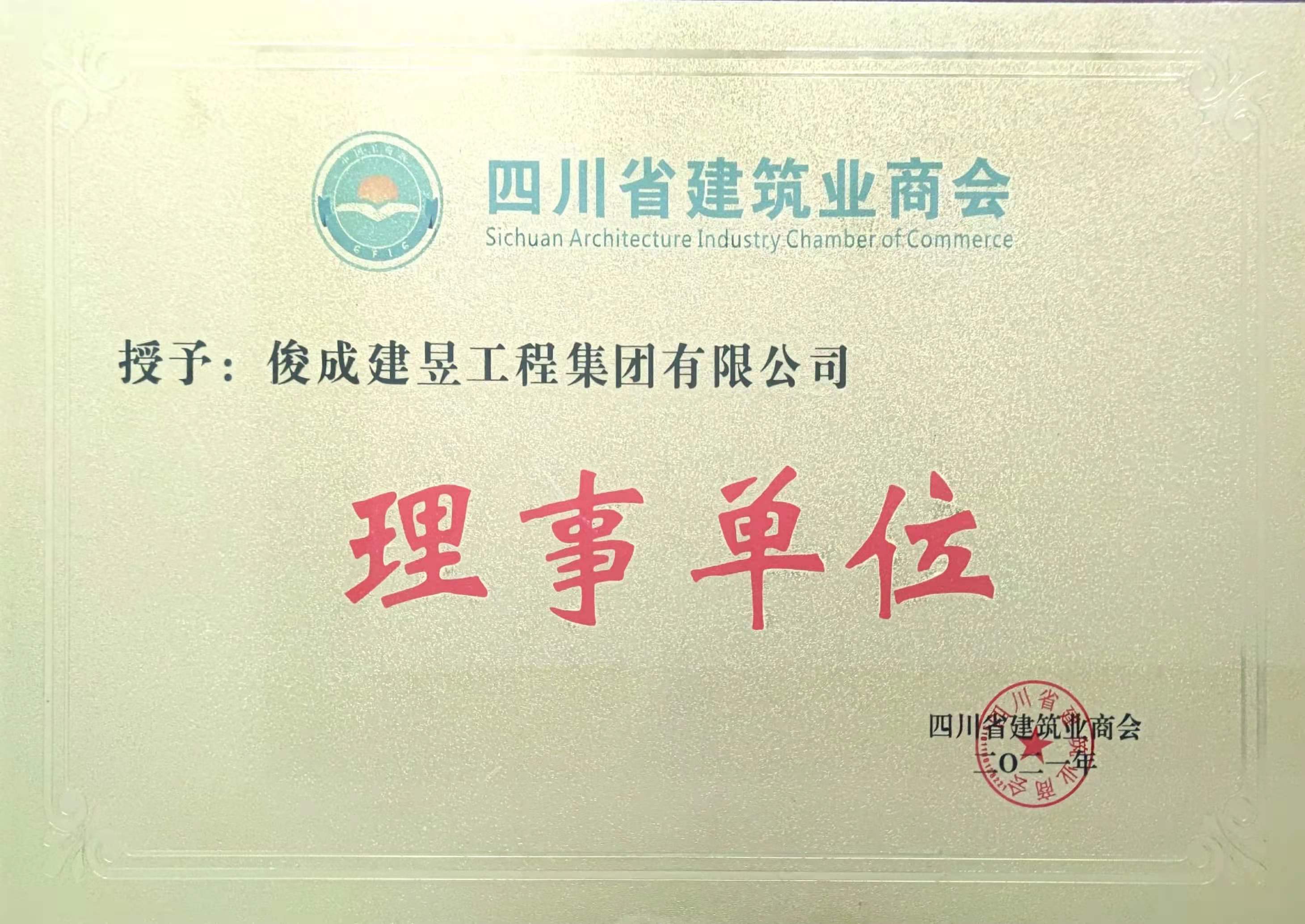 授牌儀式上,曾云勇一行對俊成建昱工程集團有限公司為我省經濟社會發展和社會主義現代化建設作出的令人矚目突出貢獻表示了充分肯定,并授予俊成建昱工程集團有限公司“四川省建筑業商會理事單位”。曾云勇副秘書長代表四川省建筑業商會將“四川省建筑業商會理事單位”的牌匾授予我司,總經理黎智代表俊成建昱工程集團有限公司接過牌匾,全場響起了熱烈的掌聲。
